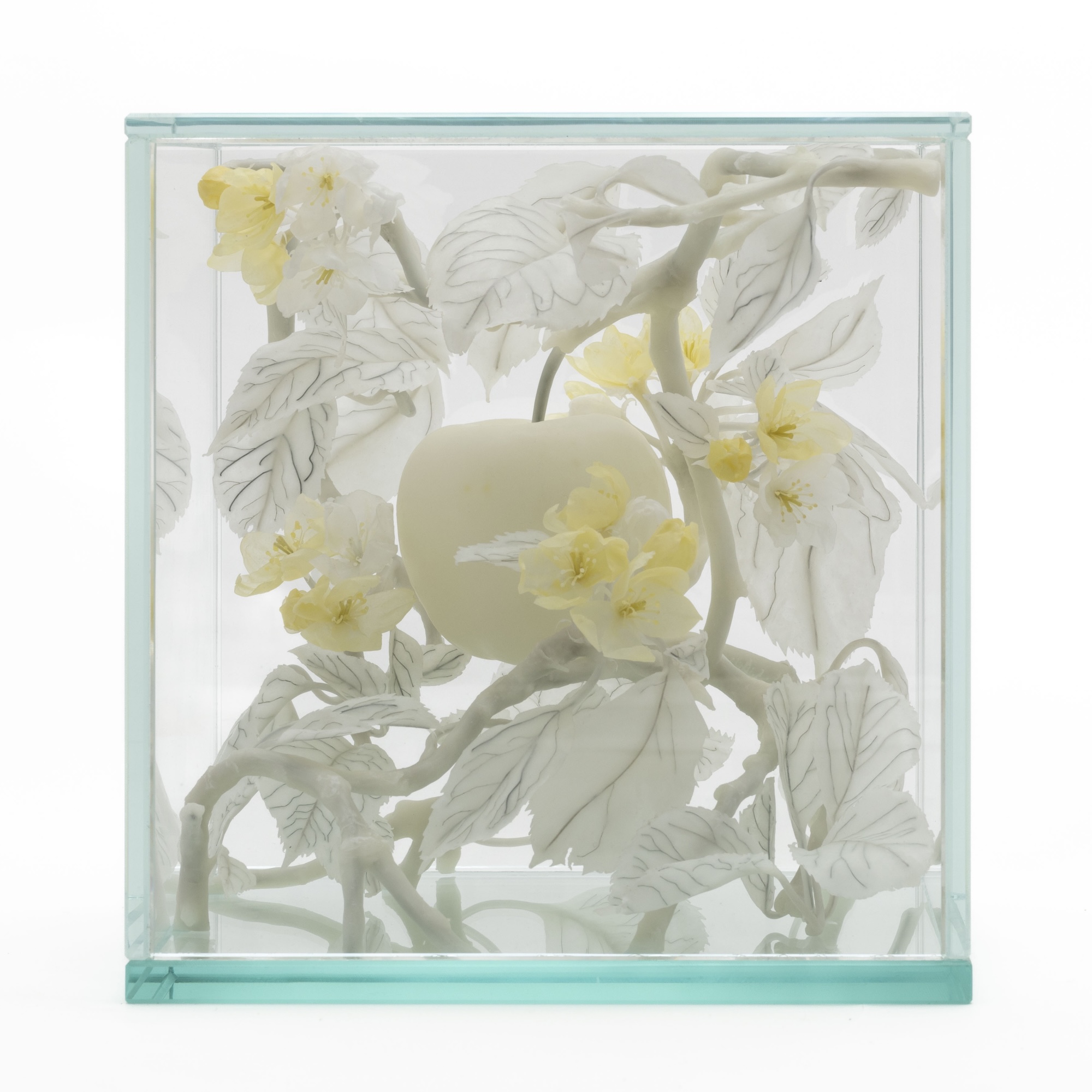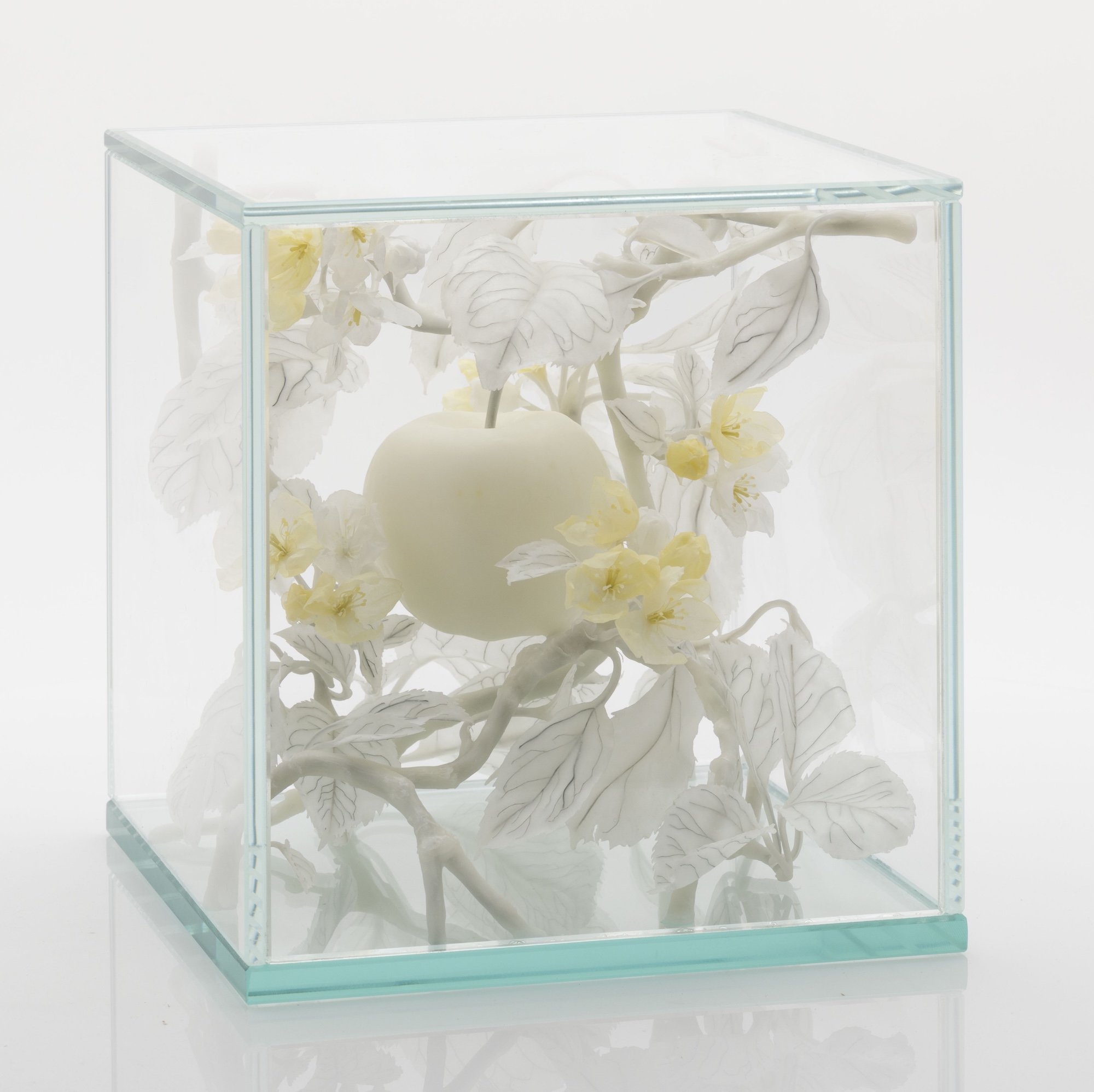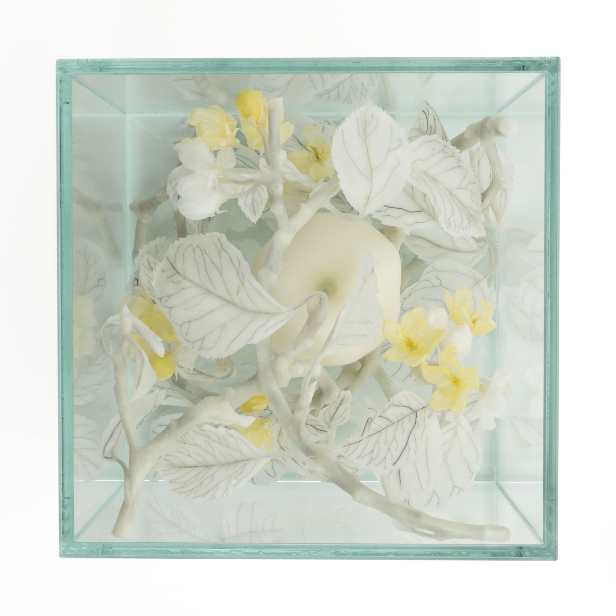 Tree of the Knowledge of Good and Evil, created using traditional wax model making techniques, has been made from honey bee wax provided by Dr. Scott McArt, Assistant Professor at the College of Agriculture and Life Sciences, Cornell University, New York. The honey bee wax, newly produced by bees in their hives during apple pollination, was collected from Orchard “B” in New York State and analysed at the Cornell Chemical Ecology Core Facility. It was found to contain pesticide residues above the EPA (US Environmental Protection Agency) and the EFSA (European Food Safety Authority) acute contact exposure levels of concern for honey bees. As Tree of the Knowledge of Good and Evil contains traces of these agricultural chemicals, they have been listed as artist’s materials